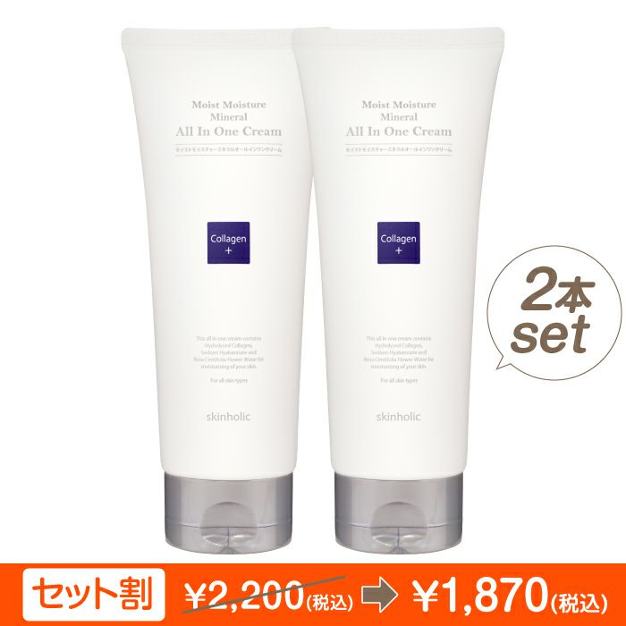 新大久保の韓国コスメショップ「スキンホリック‐skin holic」の自社ブランド! モイストモイスチャーミネラルオールインワンクリーム。 コラーゲン(うるおい成分)で肌にハリとツヤを与えます。